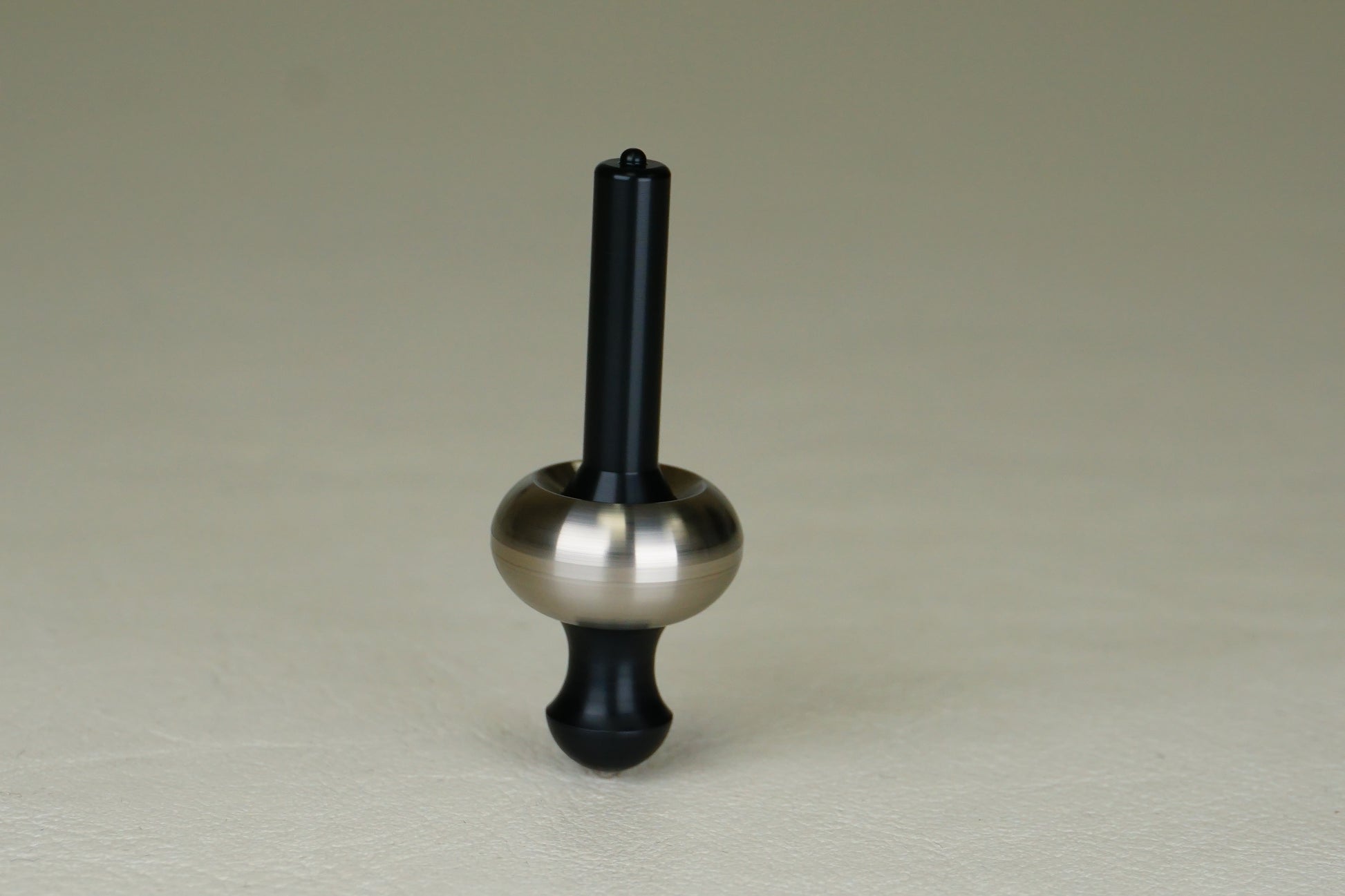 The body is made of titanium, anodized to a purple / blue. The stem is made of a sturdy POM thermoplastic, and at its tip is a stainless bearing for long smooth spin times.